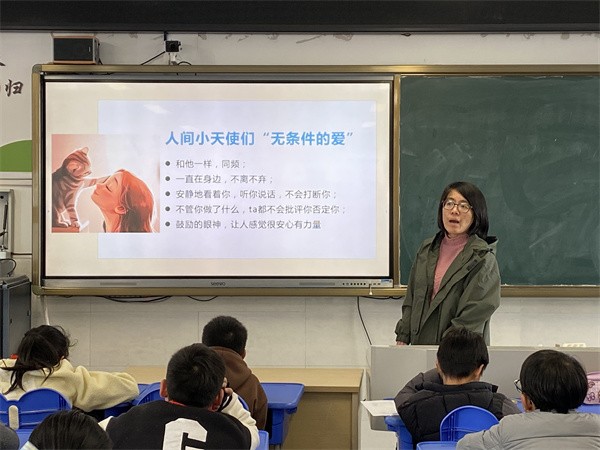 第一环节,周老师给大家带来了一节以“成为温暖的陪伴者”为主题的团辅课。周老师从一个小男孩的故事讲起,带着大家了解了什么是陪伴?讨论了平时觉得不舒服的陪伴有哪些?观看了小动物的陪伴视频,从中学习了温暖的陪伴是怎么样的?