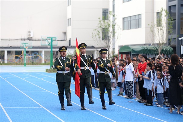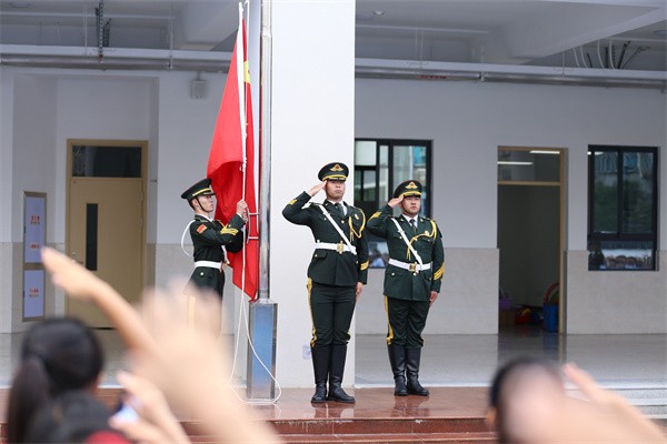学校特邀苏信学院人武部的教官们为同学们举行庄严的升旗仪式。