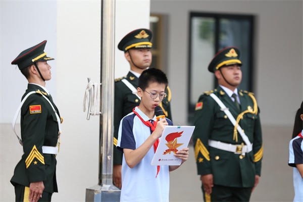 六(1)中队的队员们进行了国旗下讲话。他们生动地讲述了祖国波澜壮阔的光辉历程以及举世瞩目的伟大成就,从革命先辈们的英勇奋斗到新时代国家的飞速发展,从科技的日新月异到文化的传承创新,让同学们深刻感受到祖国的强大与荣耀。
