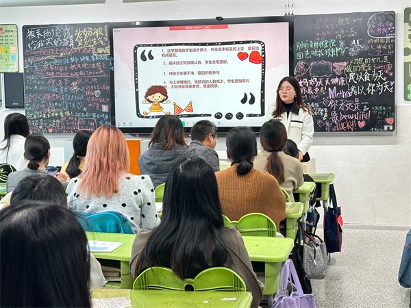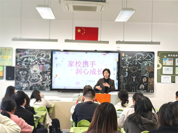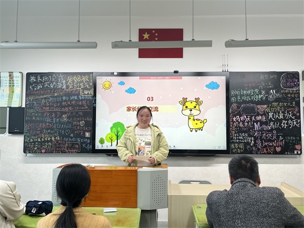 第二个环节是“家校面对面”,各位任课老师走进教室,和家长们面对面交流,从每个学科的特点出发,引导家长们知道该如何给孩子适合的帮助。班主任老师则重点介绍了本学期的重点工作,分析了班级整体情况,提醒家长们关注学生心理、重视亲子交流,建议每天有不少于15分钟的交流时间。