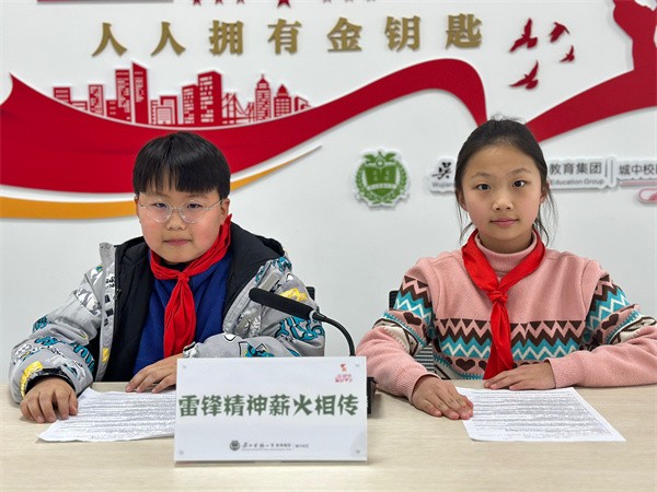 在3月,我们总会听到一个熟悉的名字,他的故事如春风拂过祖国大地,他的精神如星火,点燃一代代少年的心。他就是——雷锋。3月14日中午,红领巾广播开播,主题是:“雷锋精神薪火相传”。本次广播的主持人是五1班蔡雅婷和五3班陆樽。