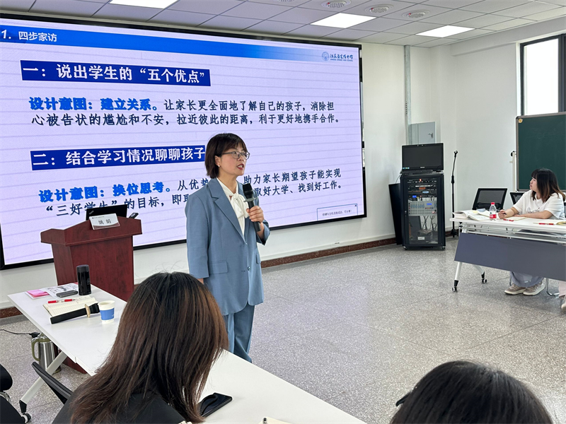 苏州市优秀家庭教育指导师姚娟老师带来专题讲座《家访,打开教育新视野》。结合自身实践,姚老师从“懂得:家访有准备;助得:家访有指导;习得:家访有反思。”这三个方面给了在座的每位班主任老师专业的引领。45分钟的讲座干货满满,为班主任提供了可操作的家校共育路径。