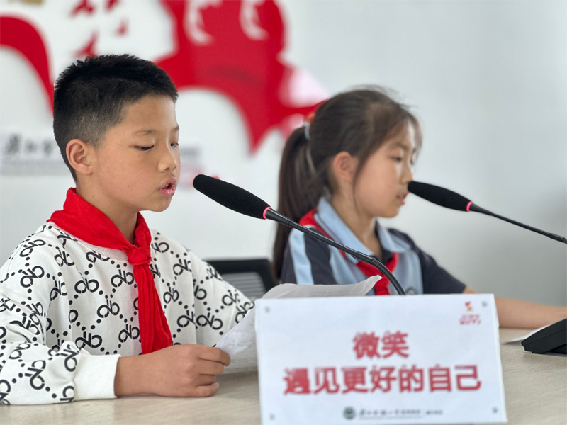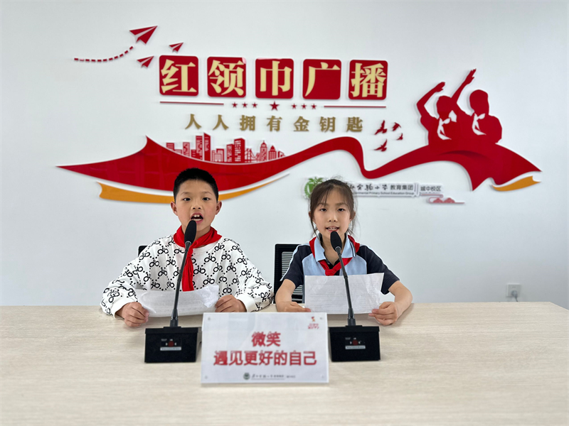 5月9日中午,城中校区的红领巾广播主题是“微笑,遇见更好的自己”,本次广播的主持人是三2班蔡祁恒和三1班吴洛伊。