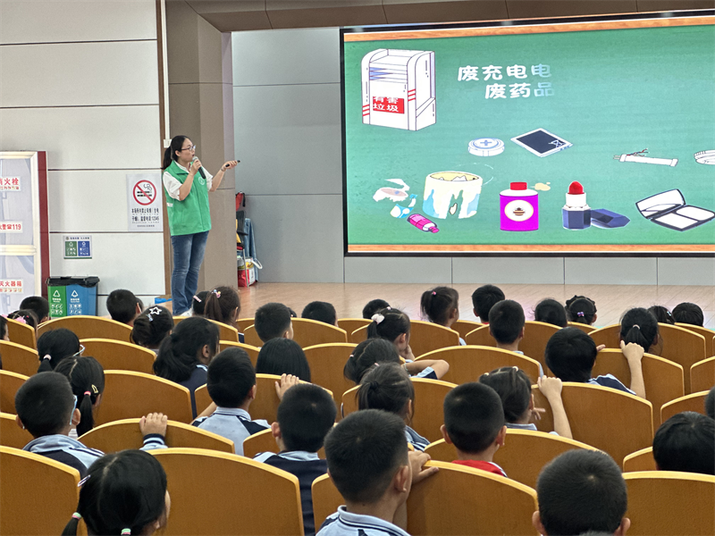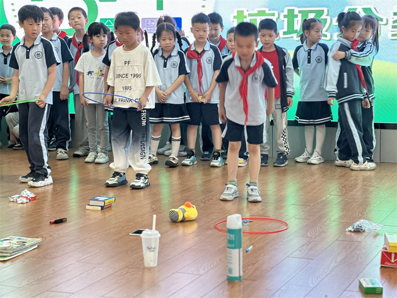 活动现场,志愿者通过视频、PPT等讲解了四类垃圾的区分方法,搭配实物道具与学生现场互动,帮助学生掌握基础垃圾分类知识,培养学生养成垃圾分类习惯,引导学生深入思考垃圾分类的价值。为强化学习效果,活动还设置了趣味问答、套圈游戏等互动环节,以寓教于乐的方式激发学生的参与热情。