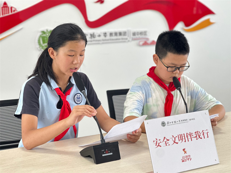 金秋九月,带着对假期的美好回忆,同学们回到了熟悉的校园。崭新的课本、亲切的伙伴、温暖的课堂,新学期的画卷正缓缓展开。而“文明礼仪”与“校园安全”,就像画卷上最鲜亮的底色,守护着同学们的学习与成长。9月12日中午,红领巾广播以“安全文明伴我行”为主题,带着大家一起聊聊如何用文明点亮校园,用安全筑牢成长的防线。本次广播的主持人是五2班陈可馨和五1班高一默。