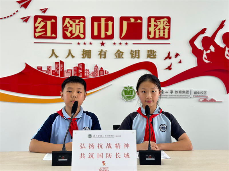 9月19日中午,城中校区红领巾广播的主题是:弘扬抗战精神 共筑国防长城。本次广播的主持人是六1中队蔡雅婷和五2中队黄宸轩。