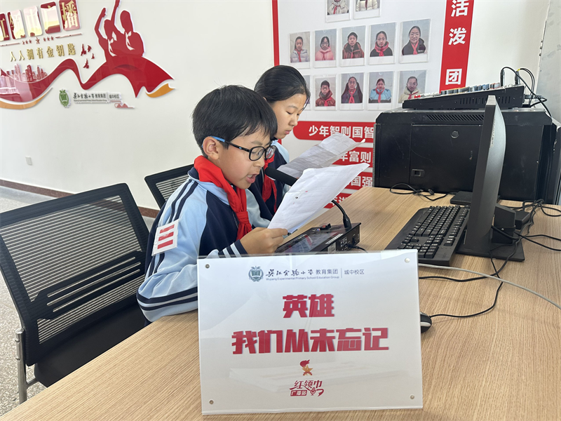 最后,两位主持人深情地向同学们呼唤:同学们,国家的强大,靠的不是空喊口号,而是每一代人的接力奋斗。王伟烈士用生命守护了祖国的蓝天,而未来的天空,终将交到我们手中。作为少先队员,我们该做什么?是在升旗仪式上站得笔直,是在课堂上认真学习知识,是在祖国需要时,也能像英雄那样,说出那句——“你们继续前进”!